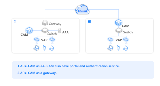 Abloomy 政府,公司无线WiFi解决方案可以根据客户的需求, 支持以下四种模式: 公有云, 私有云, 传统WLAN方式和支持第三方设备的组网方式。